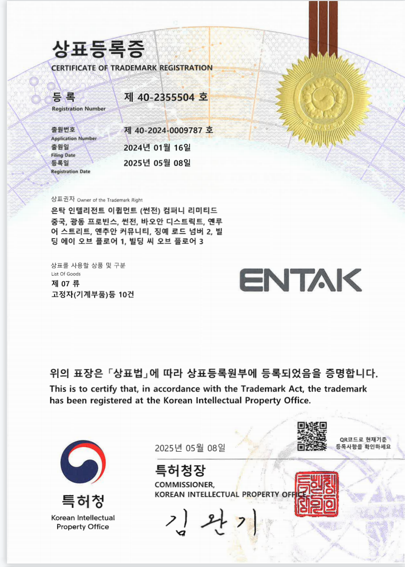 恩泰克ENTAK韩国、台湾市场销售逐步展开